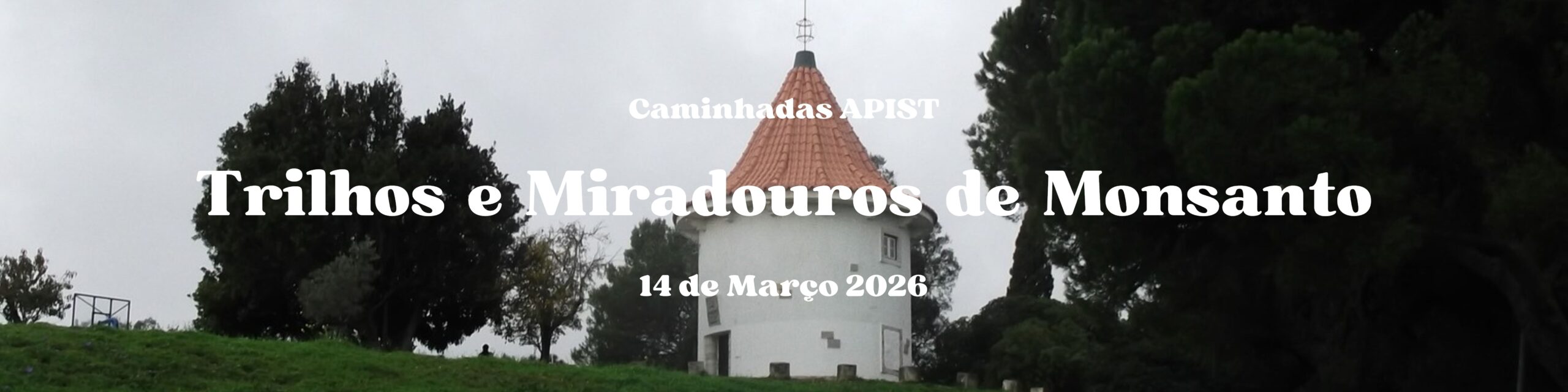 - Trilhos e Miradouros de Monsanto | 14/03/2026No próximo dia 14 de Março, vamos explorar Monsanto e os seus diversos trilhos e caminhos do Parque Florestal e as deslumbrantes vistas da cidade de Lisboa, nos miradouros que encontramos. Pontos de interesse: • Paisagens Naturais • Miradouro Moinho das 3 Cruzes do Calhau • Miradouro… Read more: Trilhos e Miradouros de Monsanto | 14/03/2026